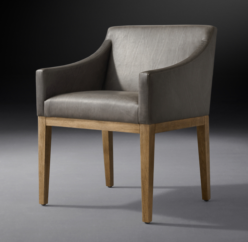 Our slope dining chair curves in both the seat and back for extra comfort. Its leather upholstery is top grain and its metal frame is timeless. Our slope dining chair curves in both the seat and back for extra comfort. Go ahead, pull up a seat.